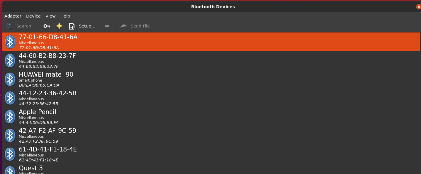 - 打开应用程序菜单 → 系统工具 → Blueman Manager