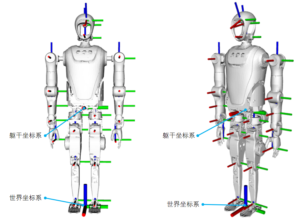 KUAVO_4pro展厅算力版自由度范围、速度扭矩限制关节位置及运动控制坐标系图示