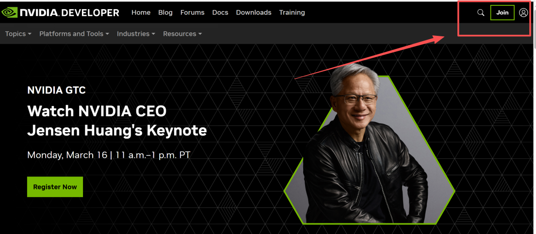 - 访问NVIDIA开发者官网 https://developer.nvidia.com/。点击右上角登录