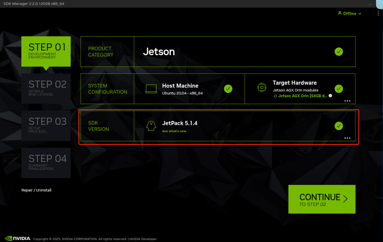 - 为什么找不到5.1.4版本:如果你不是在终端打开,或者在终端中只输入sdkmanager指令打开,可能找不到5.1.4版本。解决办法:在终端中输入以下指令,打开NVIDIA SDK Manager: