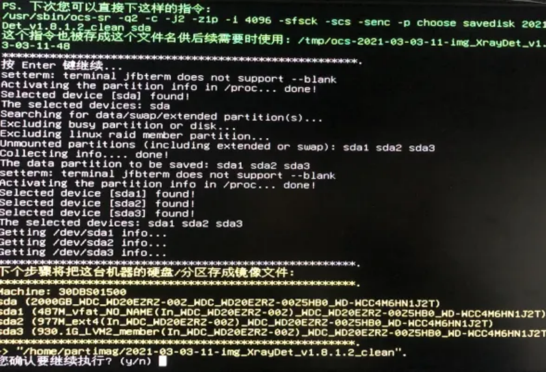 - 输入y后按“enter”回车,即可开始进行镜像封装了