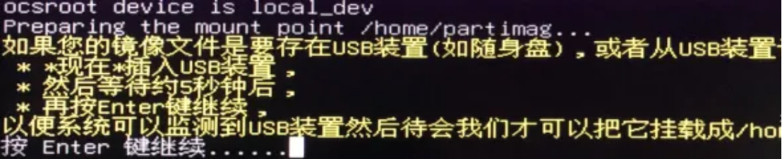 - 选择第一项,插入第一步准备好的ext4格式U盘,等待5s后按enter键检测U盘